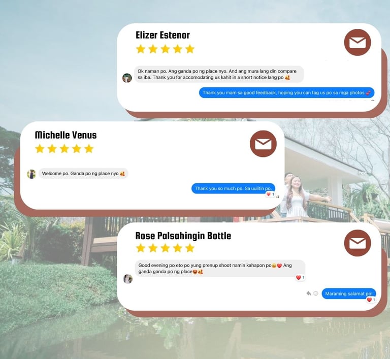 Experience the beauty of nature at our picturesque venue in Calauan Laguna, perfect for weddings, prenups, and family vacations.